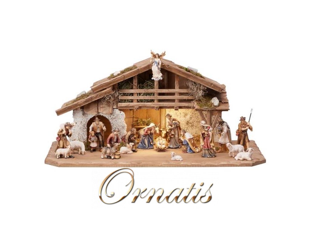 Vianočný drevený ručne opracovaný betlehem sa svetielkom, ktorého súčasťou je Svätá rodina, traja králi, anjel Gloria, muž s dievčatkom, pastier, chlapec s kozou, kľačiaci pastier, pastier s ovečkami, somár, vôl a ovečky. Sada betlehemu obsahuje celkom 18 postáv. Tento tradičný betlehem je vyrobený z dreva a ponúka sa v maľované a prírodné variante. Pre výrobu betlehemu je použité iba kvalitné drevo a majstrovská rezbárska práca je prepracovaná do najmenších detailov. Drevený betlehem je možné rozširovať o ďalšie postavy podľa aktuálnej ponuky. </ P>